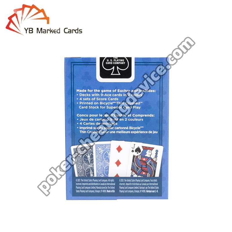 Unsere Bicycle Euchre Markenkartensets sind für heimliches Poker-Betrügen konzipiert und verwenden unsichtbare Infrarot-Tinte, die für das bloße Auge zu 100 % unauffindbar bleibt. Nur Spieler, die spezielle Pokerbrillen oder Infrarot-Kontaktlinsen tragen, können die versteckten Markierungen lesen, was Ihnen einen unfairen Vorteil bei Texas Hold'em, Omaha, Short Deck und Blackjack verschafft.